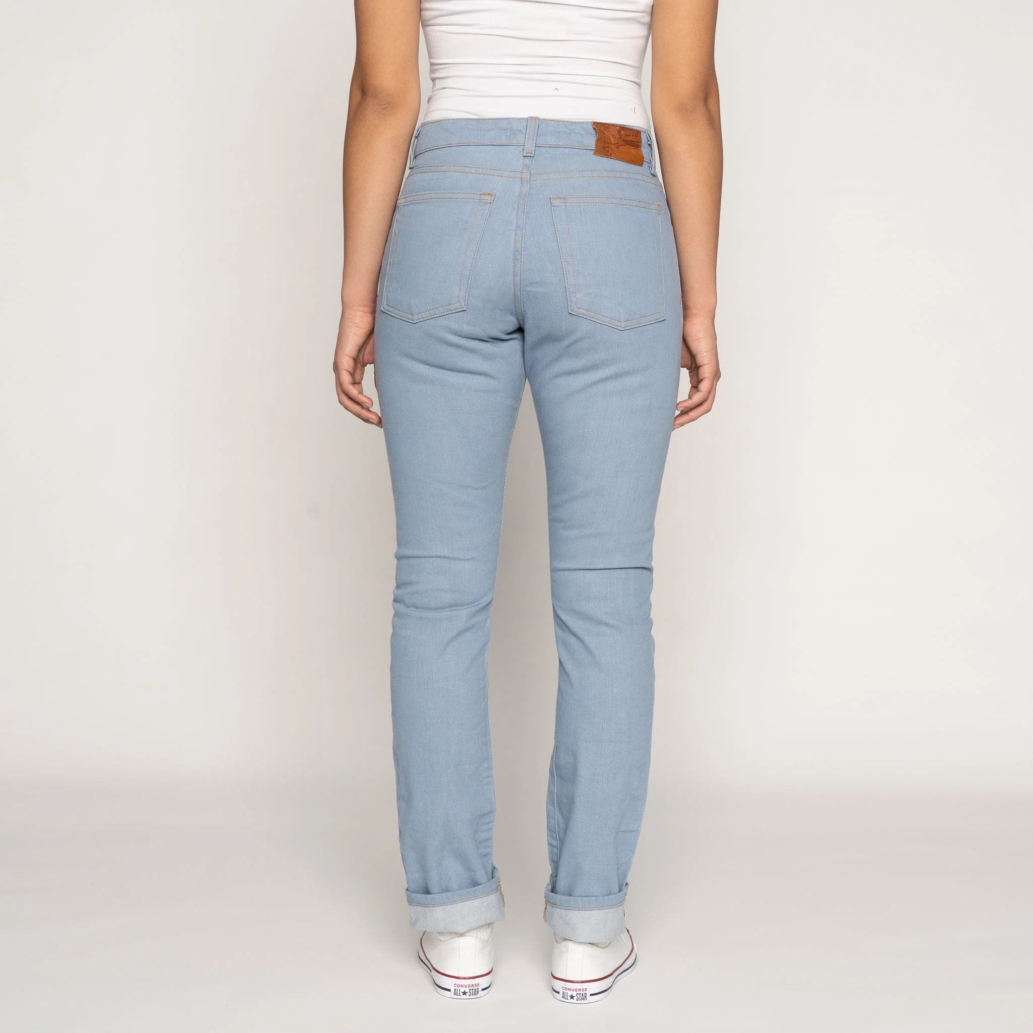The Left Hand Twill Selvedge - Sky Blue Edition is a 13.75oz Japanese Selvedge Denim, precisely woven in a left-hand twill construction. This edition reimagines our fan-favorite Left Hand Twill Selvedge fabric, employing the same yarn size and construction, but infuses it with a summerly sky-blue tone. The result is a vintage-style blue offering in raw denim form that stands out in any denim connoisseur's collection. This denim starts off rigid and crisp but softens beautifully with wear, thanks to the left-hand twill construction, which also emphasizes vertical fading over time. This denim will develop unique character with each wear, making it truly personalized to its wearer. A notable detail is the all-white selvedge ID on one side, contrasted with a single thread running down the opposite side. Constructed from 100% cotton, the jeans feature traditional contrast stitching, a light brown leather patch, zip fly, and silver metallic hardware. Each pair is meticulously cut, sewn, and crafted with attention to detail in Canada.